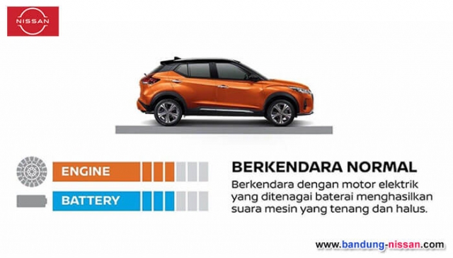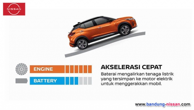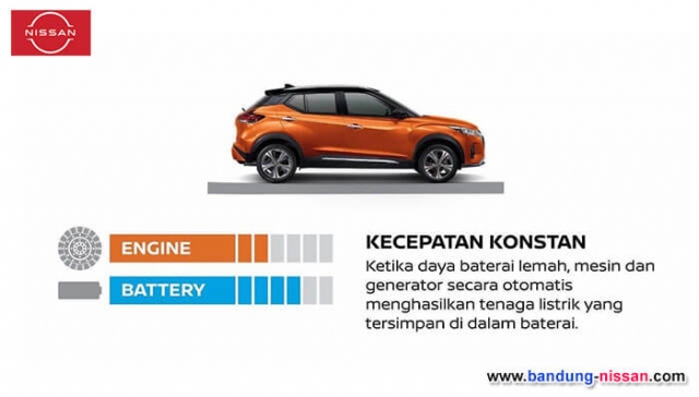 Teknologi Nissan e-POWER terdiri dari mesin 3-silinder kecil berukuran 1.2 liter, generator, inverter, dan motor elektrik. Mesin ICE (Internal Combustion Engine) dan generator akan menghasilkan listrik yang tersimpan di baterai lithium-ion, lalu menyalurkannya ke motor elektrik untuk memberi daya tanpa perlu recharging listrik dari luar. Memberikan pengalaman berkendara baru dengan motor yang 100% digerakkan oleh tenaga listrik.